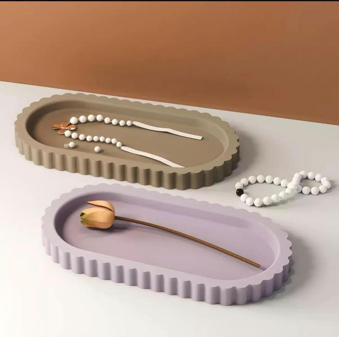 bandeja oval con borde rayado